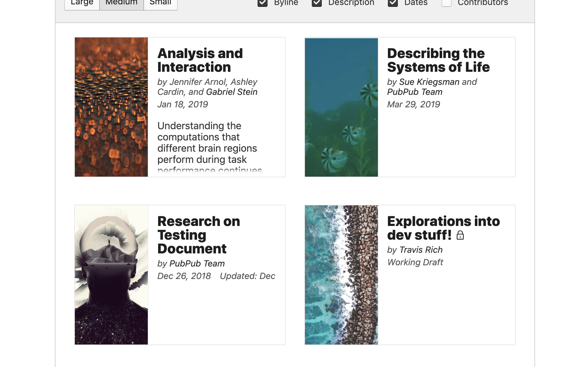 Pubs block: Used to flow a set of pubs using Pub Previews.